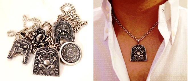 鬼の顔(鬼面)をモチーフとしたシルバーアクセサリーは宇宙のパワーを取り入れ、己を守るアイテムとして、蓮は己の清浄さを表すアイテムとして、鯉の滝登りは己の立身出世の象徴として様々なシーンで着用できます。