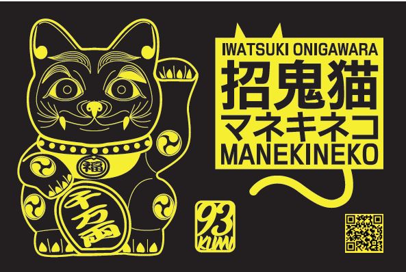 黒い招き猫は魔除け、三つ巴紋は防火、左手を上げる招き猫は人を呼ぶと言われています。通学路を通る子供たちを見守り、高浜市民を災いから守り、そして高浜市の商工業が発展する願いが込められています。どうぞ一年間鬼師kumiの招鬼猫を可愛がってください。
